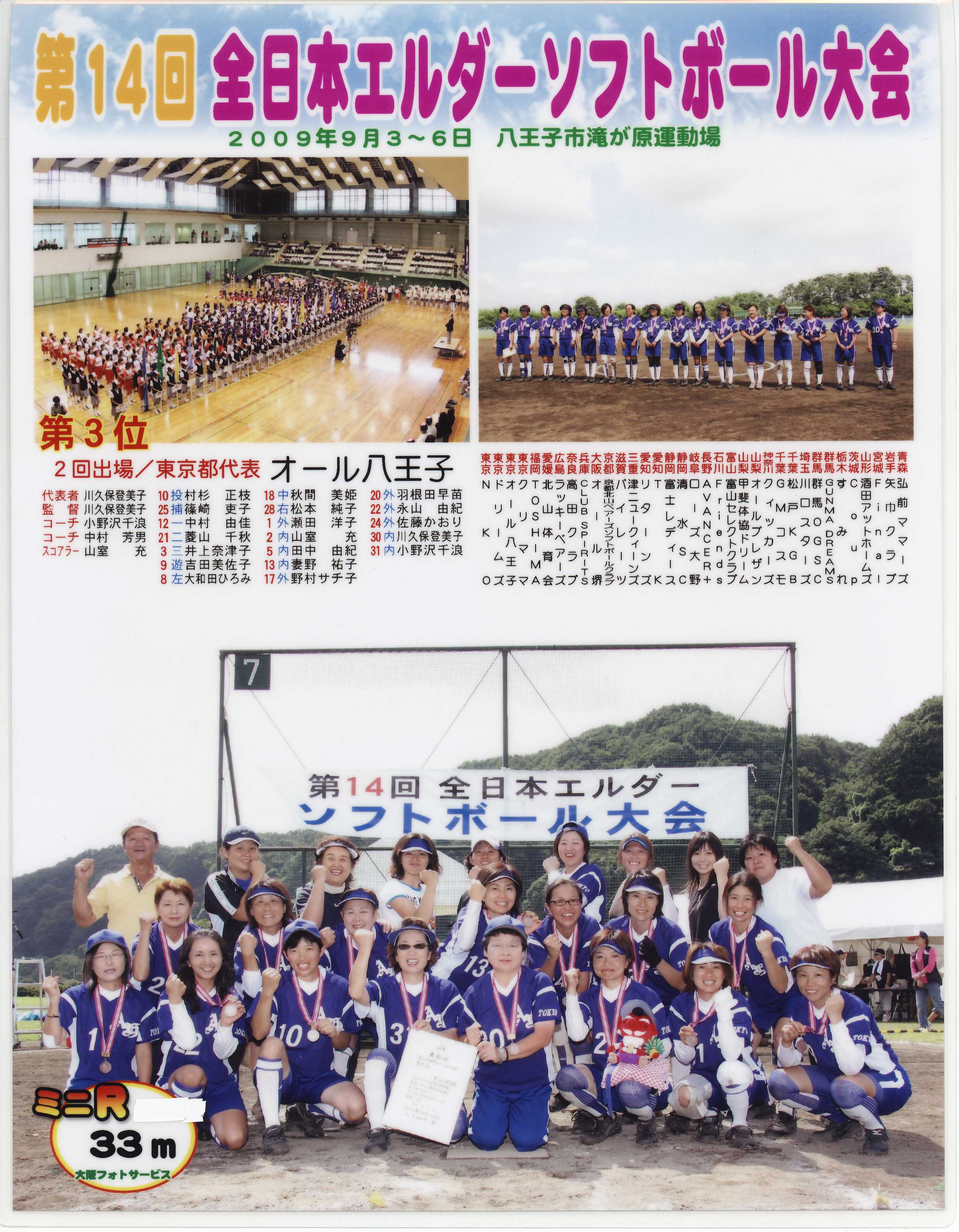 私達オール八王子は第14回全日本エルダーソフトボール大会で第3位という成績を収める事が出来ました。これは若手選手と年輩選手とのチームワークの良さが勝因だと思います。又日頃、ご協力・ご声援頂いている関係者の方々、家族のお陰と感謝しております。これからもチーム一丸となり頑張って参ります。ご声援よろしくお願い致します。